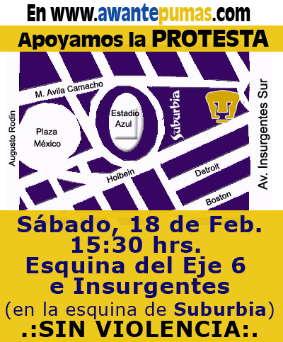 "Llevemos pancartas, máscaras, volantes, etc etc etc osea todo loque sea necesario para manifestar nuestro descontento con la directiva. Se trata de manifestarnos en buen plan, osea cero violencia, pero espero que juntemos buena cantidad de aficionados para que salga algo muy padre y que se vea en los medios de comunicación, aunque los líderes quieran detener todo esto (ya escuché rumores por ahi) el chiste es que la buena banda no se achique"