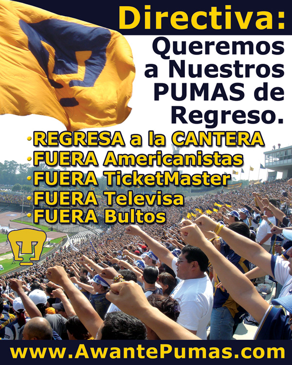 Página Dedicada a los PUMAS de la UNAM y a sus Aficionados de Corazón. ¡En Las Buenas y en Las Mals PUMAS POR SIEMPRE!